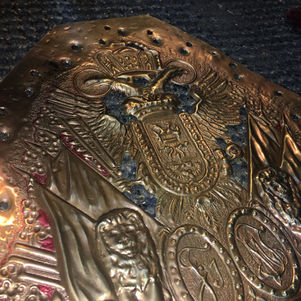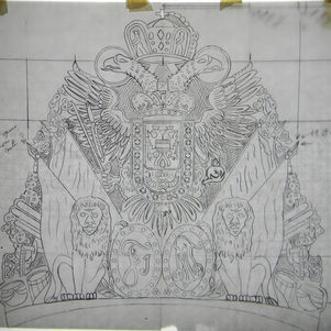 This piece is a 9" x 8.5" replica of a grenadier hat brass plate.